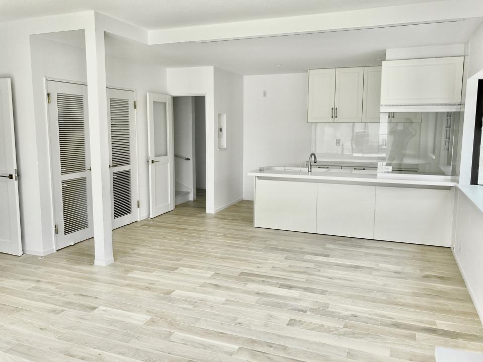真っ白なリビング・洗面に、シンプルな配色のクローゼット。どちらも映えます。